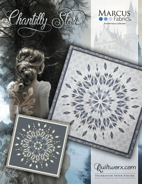 Chantilly Star is a graceful evolution of our beloved Prismatic Star series, designed to teach the foundational strip piecing technique used in most of our Lone Star quilts. This 100″ x 100″ layout features (48) diamond blocks, a background, and a border—all assembled using 2-1/2″ strips. It’s ideal for beginners eager to master Judy’s Lone Star method, as well as seasoned quilters who appreciate a project that comes together with ease and elegance.
