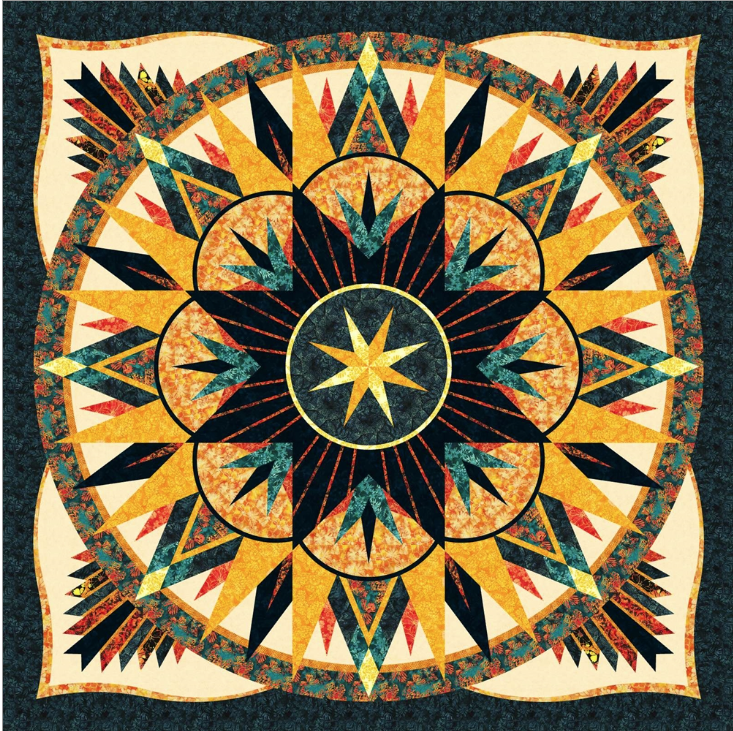 Measuring 96″ x 96″, Western Monarch offers flexibility for quilters who wish to expand their project. By purchasing either a 3- or 4-Tiered Adjustable Border package, you can enlarge the quilt to suit your space and vision. Replacement Papers are also available, making it easy to create a second quilt without buying the pattern again.